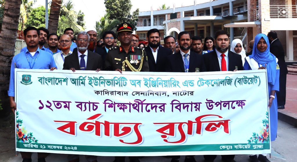 বাউয়েট, কাদিরাবাদ, নাটোরঃ নাটোরের কাদিরাবাদ সেনানিবাসে অবস্থিত বাংলাদেশ আর্মি ইউনিভার্সিটি অব ইঞ্জিনিয়ারিং এন্ড টেকনোলজি (বাউয়েট) ক্যাম্পাসে ১২তম ব্যাচের Deltin 7 অনলাইন স্লটর্থীদের কোর্স সমাপনী উপলক্ষে বর্ণাঢ্য র‌্যালী ও বিশেষ মোনাজাতের আয়োজন করা হয়।