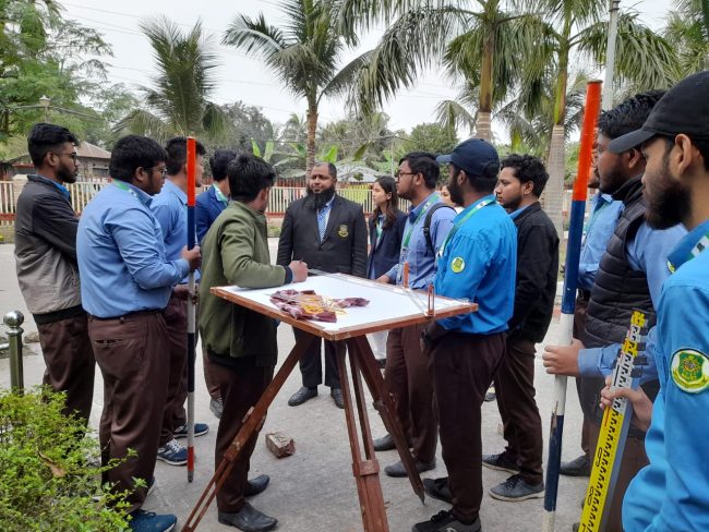 চারটি গ্রুপে বিভক্ত হয়ে মোট ৬৬ জন ছাত্র ছাত্রী Chain Surveying, Curve Setting, Levelling and Contouring , House Setting সহ বিভিন্ন ধরনের সার্ভে সম্পর্কে বিস্তারিত আলোচনা ও সরাসরি ফিল্ডে কাজ সম্পন্ন করে।