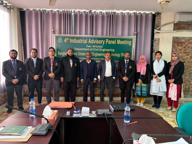 Distinguished Industrial Advisory Panel members, Dr. Md. Iqbal Hossain, Additional Chief Engineer, Barind Multipurpose Development Authority (BMDA), and Mr. Sudipta Roy, Senior Deputy Manager, Meghna Cement Mills Ltd., were present and shared valuable insights from their professional experience.