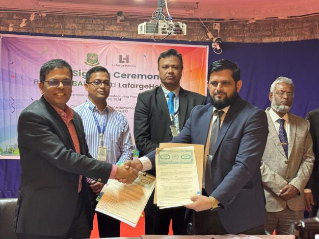 MoU Signing Ceremony between BAUET and Lafarge Holcim Bangladesh Limited. It is a partnership built on a shared vision—one that values innovation, sustainability, and the integration of academia with industry. Through today’s discussions and the insightful seminar on the Cement Manufacturing Process, we have reinforced our commitment to advancing knowledge and fostering research that will contribute to a more sustainable future. The project on Green Innovation in Pavement Construction: Harnessing Sugarcane Bagasse Ash for Sustainable Infrastructure, which has been the driving force behind this MoU, exemplifies how research and industry can come together to create impactful solutions. Respected deans, registrar, heads of the all departments, faculty members