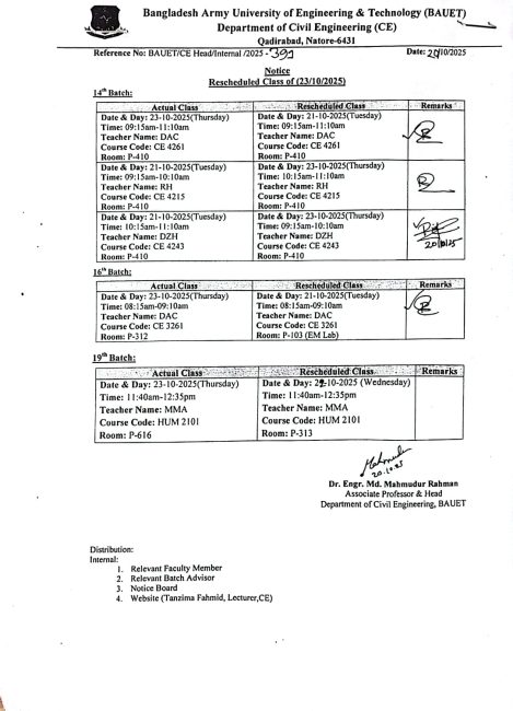 Replaced & Rescheduled Class Routine of SRS (08 & 09 October, 2025)