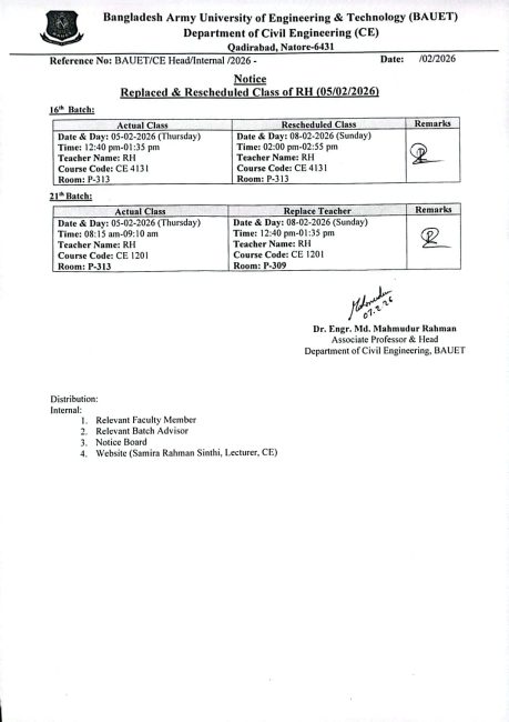 Rescheduled Classes of 30.03.2026 and 06.04.26