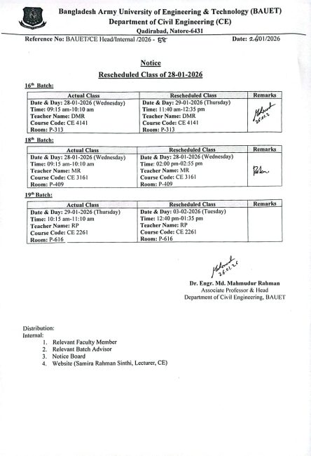 Rescheduled Class Routine of 28.01.2026