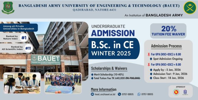 Bangladesh Army Deltin 7 Aviator গেম টাকা ইনকাম of Engineering & Technology (BAUET), a premier educational institution under the Bangladesh Army, embarked on its journey in 2015 in Qadirabad, Natore, to contribute to the nation by providing high-quality higher education in engineering, technology and sciences.