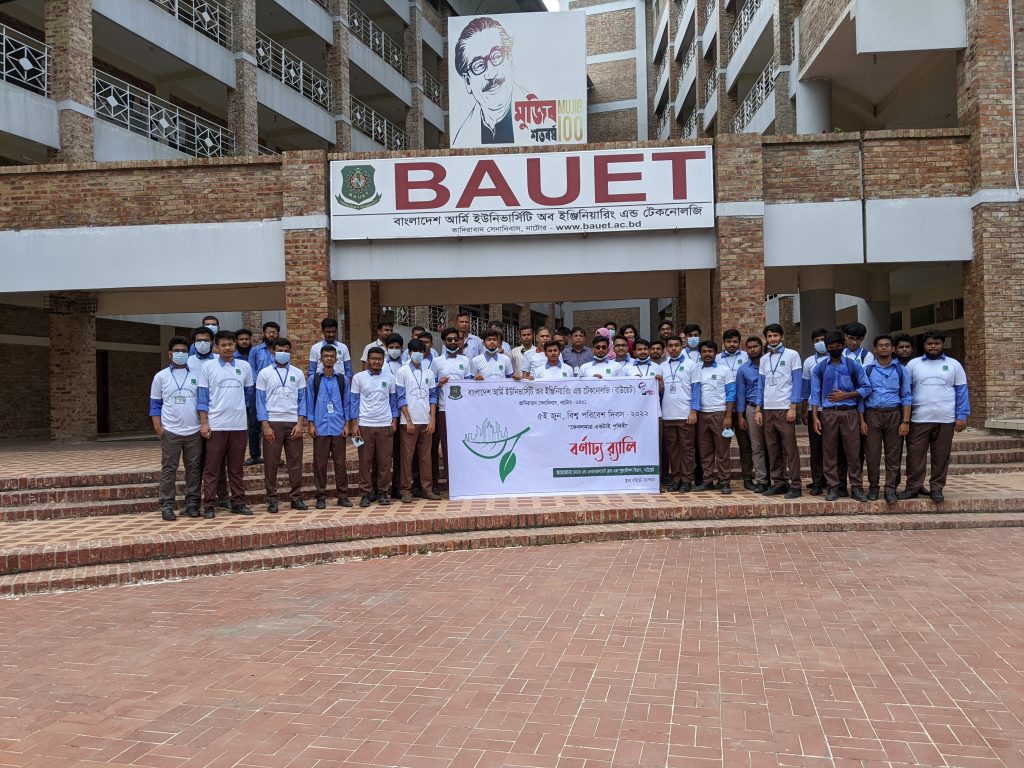 On this Sunday 5th, June 2022, Department of CE, BAUET and IQAC along with Nature & Environment Club organized an awareness program on the occasion of World Environment Day. The program included rally, discussion phase and tree planting activities. Prof. Dr. Chow. M. Sarwar Jahan, the keynote speaker, delivered a very good and well-researched speech about how the condition of our environment today is and why we need to be aware. Chief guest Vice-Chancellor Brig Gen M. Mustafa Kamal, Dean and Head of CE dept Prof. Dr. Engr. Md. Rashidul Hasan, students and faculty members have participated with full energy in this program. There were also some groups of students who were also engaged in cleaning the varsity campus.