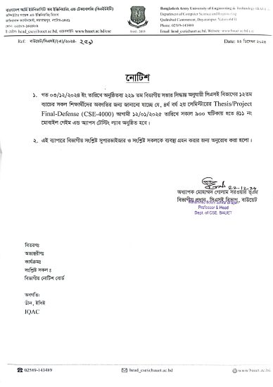 Industrial Attachment Presentation Notice (16th Batch) IDP Phase-I Notice ( 16th Batch) Notice for Course Registration of Winter-2025 Semester Notice on Commencement of Classes for Winter 2025 Semester Original Certificate Notice and Application Form Notice Regarding certificate attestation by Apostille method for students going abroad