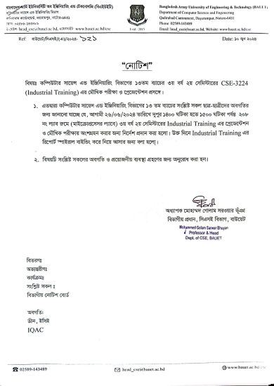 Industrial Attachment Presentation Notice (16th Batch) IDP Phase-I Notice ( 16th Batch) Notice for Course Registration of Winter-2025 Semester Notice on Commencement of Classes for Winter 2025 Semester Original Certificate Notice and Application Form Notice Regarding certificate attestation by Apostille method for students going abroad