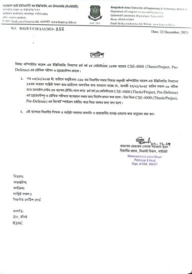 Industrial Attachment Presentation Notice (16th Batch) IDP Phase-I Notice ( 16th Batch) Notice for Course Registration of Winter-2025 Semester Notice on Commencement of Classes for Winter 2025 Semester Original Certificate Notice and Application Form Notice Regarding certificate attestation by Apostille method for students going abroad
