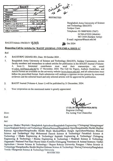 Call For BAUST Journal