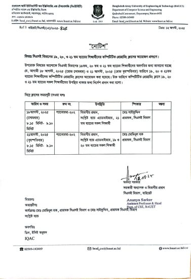 Industrial Attachment Presentation Notice (16th Batch) IDP Phase-I Notice ( 16th Batch) Notice for Course Registration of Winter-2025 Semester Notice on Commencement of Classes for Winter 2025 Semester Original Certificate Notice and Application Form Notice Regarding certificate attestation by Apostille method for students going abroad