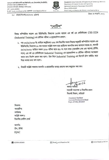 Industrial Attachment Presentation Notice (16th Batch) IDP Phase-I Notice ( 16th Batch) Notice for Course Registration of Winter-2025 Semester Notice on Commencement of Classes for Winter 2025 Semester Original Certificate Notice and Application Form Notice Regarding certificate attestation by Apostille method for students going abroad