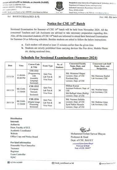 Industrial Attachment Presentation Notice (16th Batch) IDP Phase-I Notice ( 16th Batch) Notice for Course Registration of Winter-2025 Semester Notice on Commencement of Classes for Winter 2025 Semester Original Certificate Notice and Application Form Notice Regarding certificate attestation by Apostille method for students going abroad
