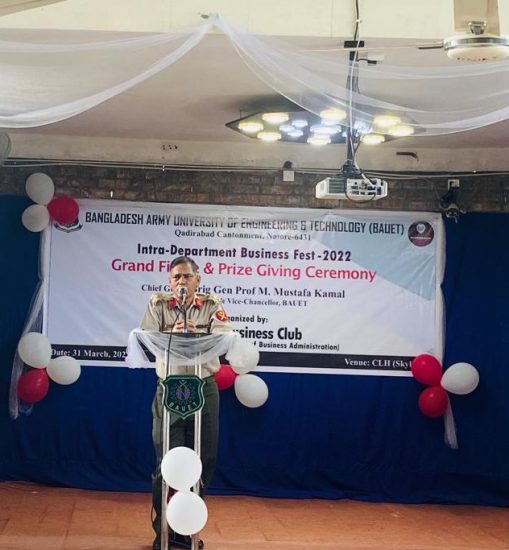 Honorable Vice-chancellor is giving his speech on the occasion of Grand Finale and Prize Giving Ceremony of Business Fest 2022