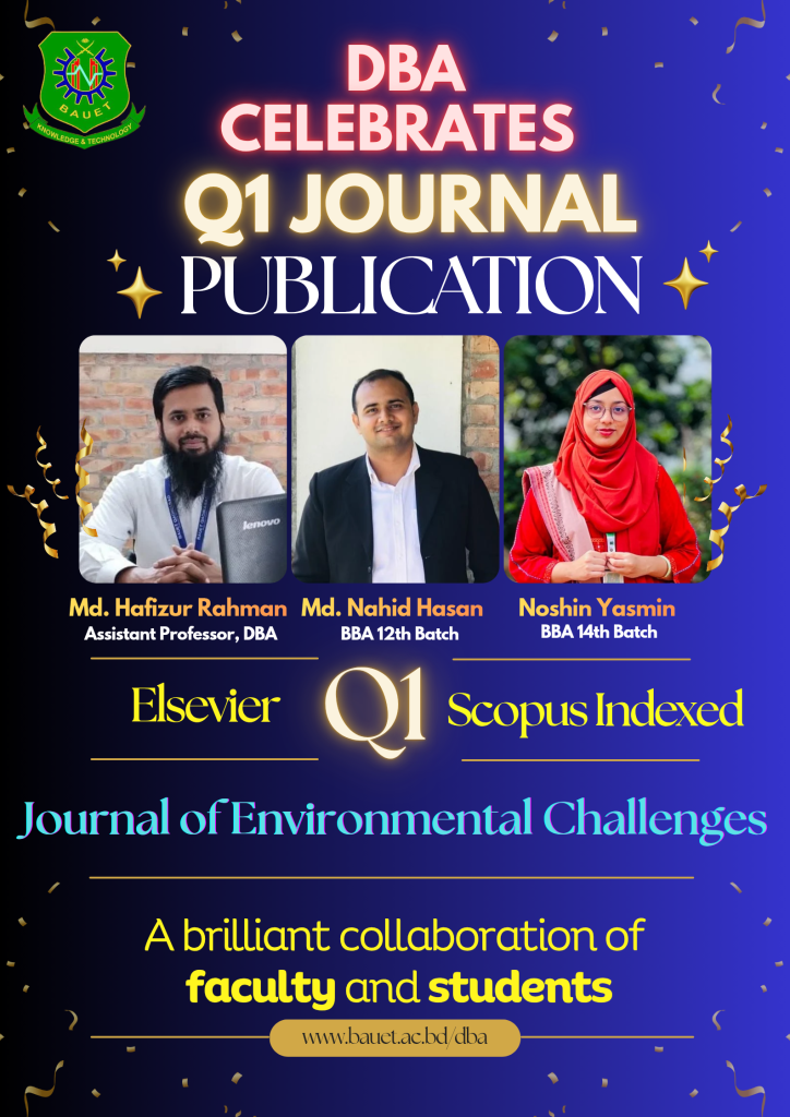 Farewell to BBA 12th Batch Admission Circular of Winter 2025 Seminar on “From Campus to Corporate: Breaking Barriers and Building Dreams” DBA Students Champion in HULT PRIZE at BAUET 2020 DBA Student Nusrat Jim Champion in Mind Storm Idea Contest 2020