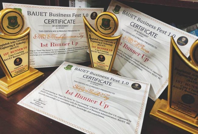 ” Team The Storm” of EEE Department are the 1st Runner Up in “Case Cracking” of BAUET Business Fest 1.0 organized by BAUET Business Club.