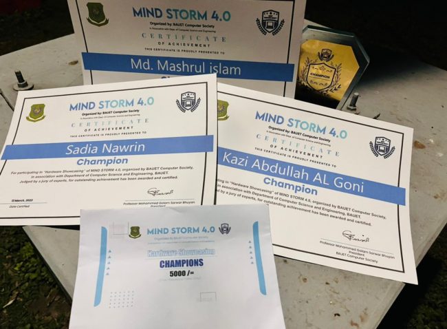 “Team Seeker ” of EEE Department are the champion in “Hardware Showcasing” of MIND STORM 4.0 organized by BAUET Computer Society. They have designed a “3D Printer”.