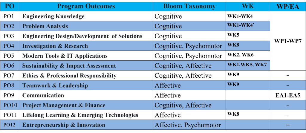 - PO5: Modern Tool Usage- through tools taught in Lab classes