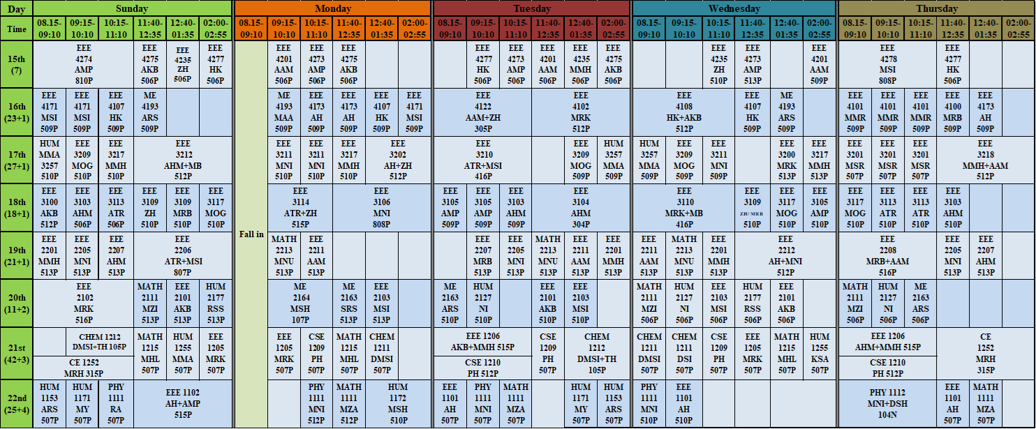| Thursday | CSE-307(60) EEE-513(30) CSE-713(60) |