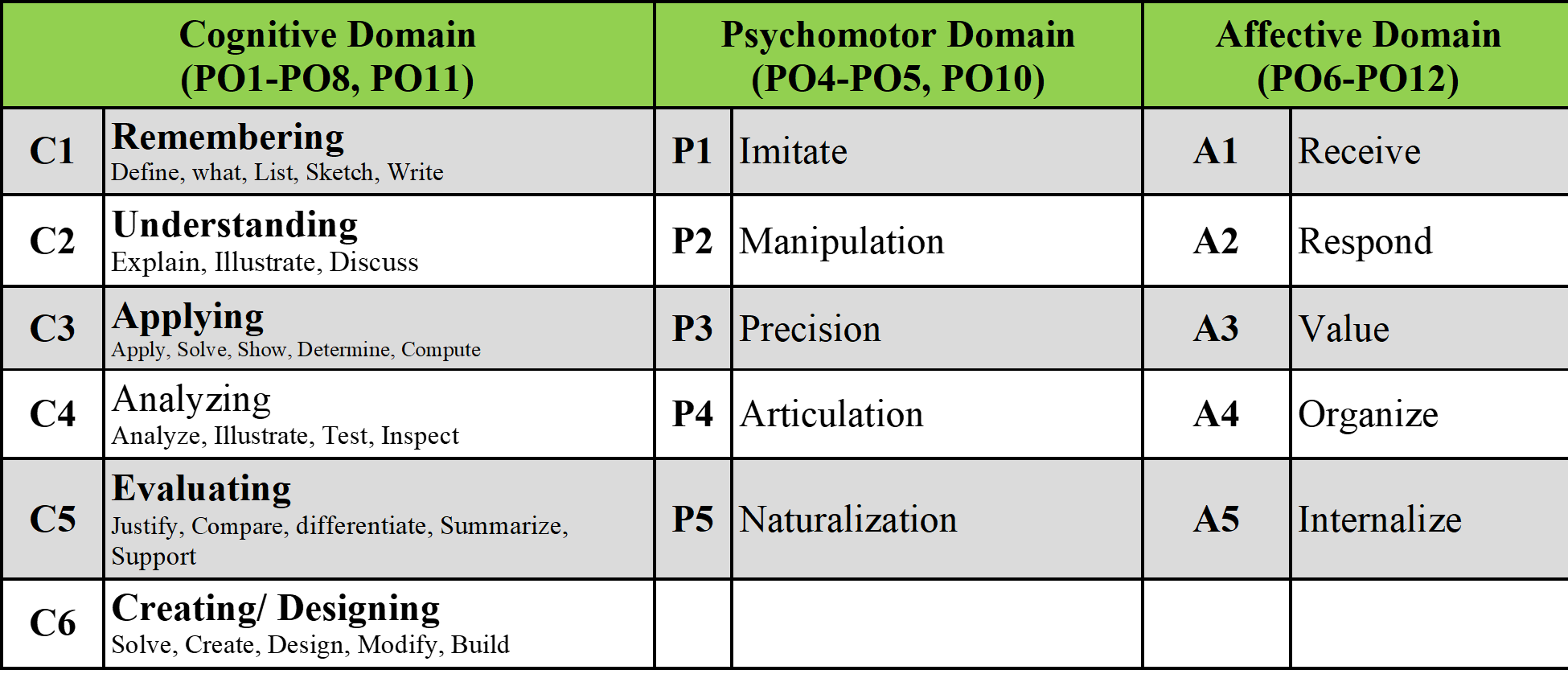| Articulation | Adapt and integrate expertise to satisfy a non-standard objective | Relate and combine associated activities to develop methods to meet varying, novel requirements | construct, solve, adapt, combine, coordinate, integrate, develop, formulate, modify, master |