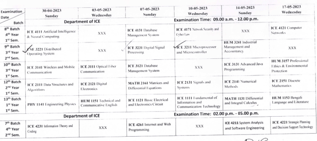 Regarding Thesis Defence Notice ICE 7th Batch