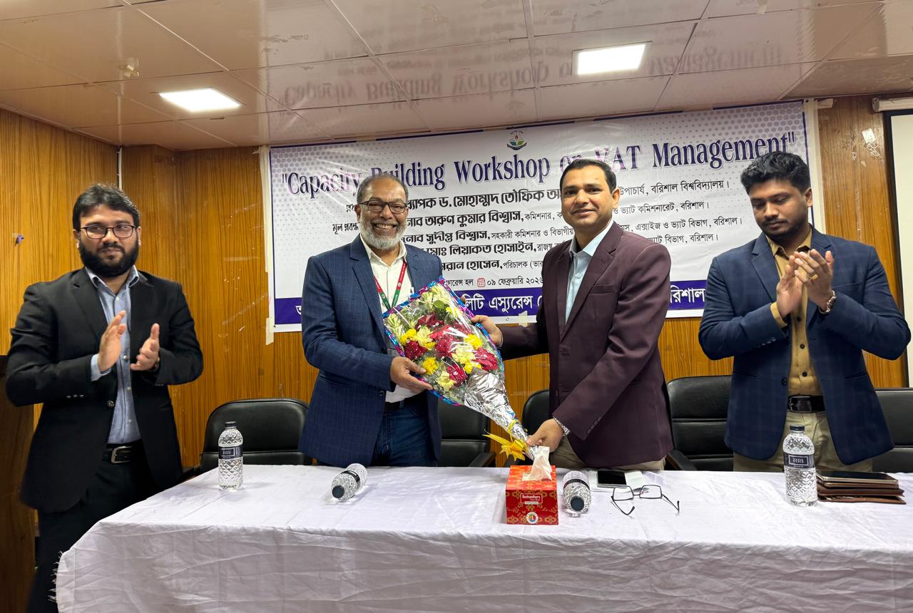 বরিশাল লগইনের ইনস্টিটিউশনাল কোয়ালিটি এস্যুরেন্স সেল (আইকিউএসি) এর আয়োজনে “Capacity Building Workshop on VAT Management” শীর্ষক কর্মশালা অনুষ্ঠিত