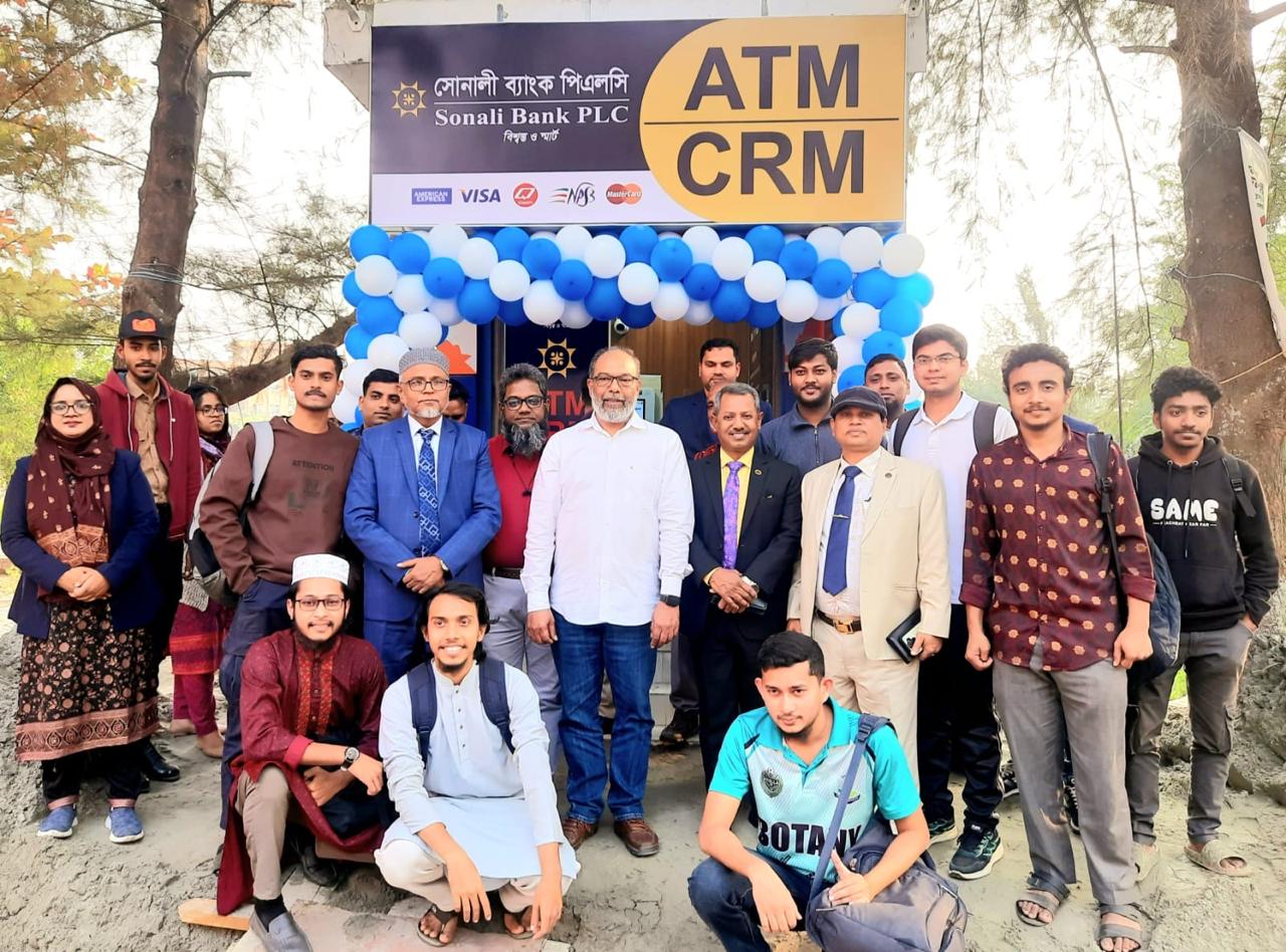 সোনালী ব্যাংক পিএলসি বরিশাল লগইন শাখায় এটিএম/সিআরএম বুথ উদ্বোধন করছেন বরিশাল লগইনের মাননীয় ভাইস-চ্যান্সেলর প্রফেসর ড. মোহাম্মদ তৌফিক আলমসহ অন্যান্যরা