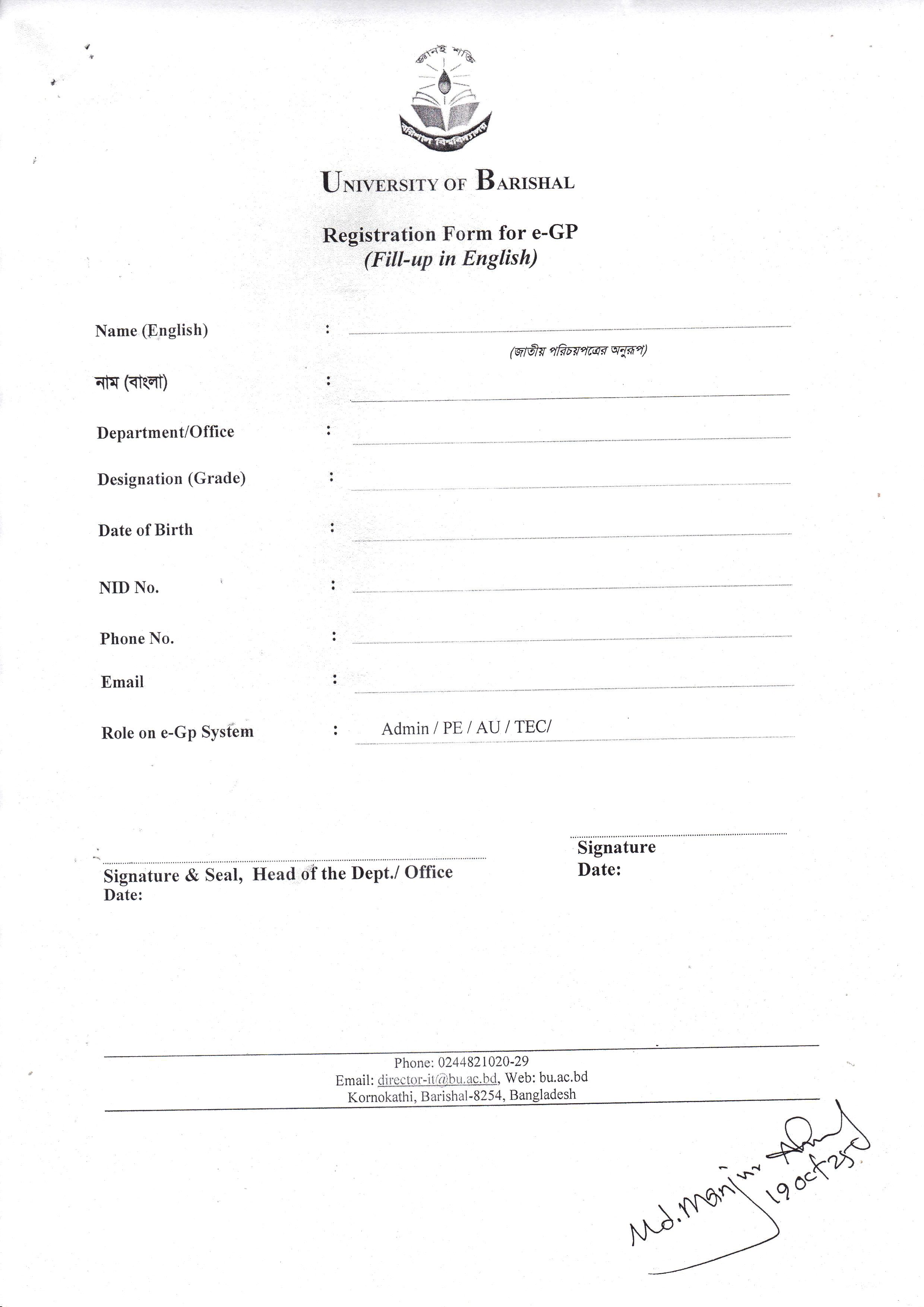 5 | Registration Form for e-GP Portal | 2025-10-19 | Download |