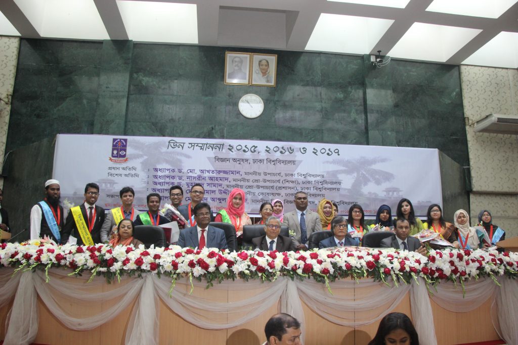 Dr. M. Shafiqur Rahman is the 2017 Awardee for his research publication “Performance of Firth-and log F-type penalized methods in risk prediction for small or sparse binary data” in the “Professor/Associate Professor” category. Dr. Tamanna Howlader is another 2017 Awardee in the same category for writing book chapter “Mathematical and Statistical Applications in the Life Sciences and Engineering”. Dr. Md. Anower Hossain has also been awarded this coveted award for his research publication “Missing binary outcomes under covariate dependent missingness in cluster randomised trials” in the “Assistant Professor/ Lecturer” category of 2017. In this category, Mr. Nabil Awan, another faculty member of ISRT, is the 2016 Awardee for his research publication “Efficient estimation in two-stage randomized clinical trials using ranked sets”.