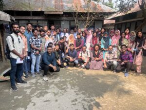 On February 15, 2024, the Institute of Statistical Research and Training (ISRT), in coordination with the International Centre for Diarrhoeal Disease Research, Bangladesh (icddr,b), organized a field trip at the latter’s Health and Demographic Surveillance Systems (HDSS) site, Matlab, Chandpur. The fourth-year undergraduate students of Applied Statistics took part in the excursion which was an important component of their “Research Methodology and Social Statistics” course. A small group of ISRT faculty members led by Professor Dr. Md. Israt Rayhan accompanied the students in the trip.