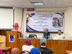 The event was presided over by ISRT Director, Professor Dr. Tamanna Howlader. It included an inspiring address from Professor Dr. Abdus Salam, Dean of the Faculty of Science, who attended as a special guest. Professor Dr. Md. Israt Rayhan gave the welcome address, setting a warm and celebratory tone for the occasion. Faculty members, students, and family members were present to honour this significant achievement.