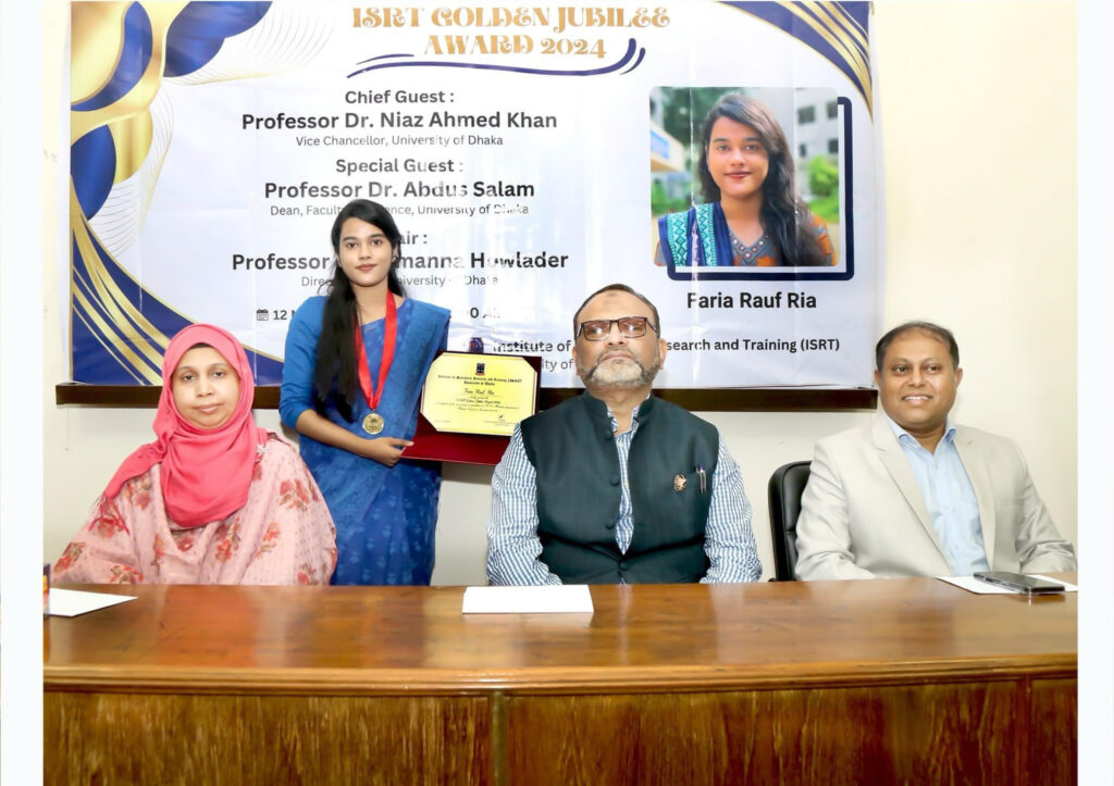 ISRT Director, Professor Dr. Tamanna Howlader, also extended her heartfelt congratulations to Ria, appreciating her hard work and dedication. The ISRT family proudly congratulates Faria Rouf Ria on this remarkable achievement and prestigious award.