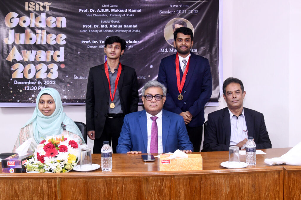 ISRT Golden Jubilee Award ceremony 2023 took place on 06 December at the ISRT Seminar room. This year, Md. Muhitul Alam and Md. Abdullah Al Fahim from Session 2021-22 jointly received the prestigious award for achieving the highest CGPA in the B.S. Honors Examination 2022.