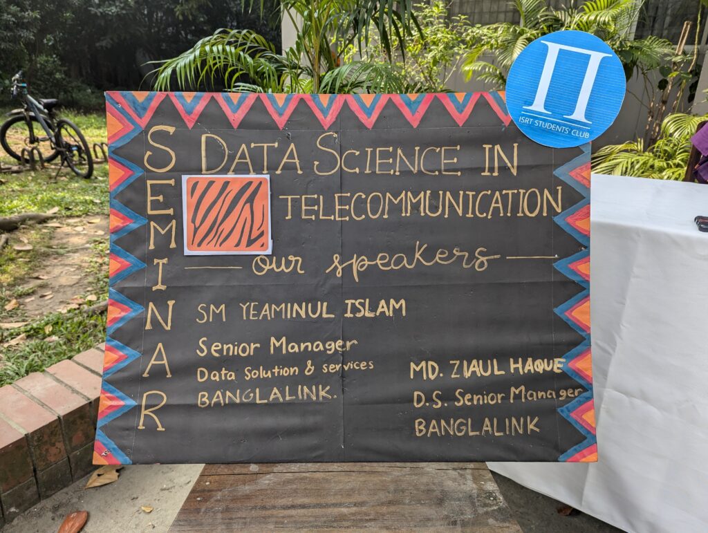 ISRT Students’ Club has organized a collaborative seminar with Banglalink, one of the leading telecom companies in Bangladesh, titled “Data Science in Telecommunications”. Two leading experts from Banglalink, S M Yeaminul Islam, Senior Manager of Data Science and Solutions, and MD Ziaul Haque, Senior Manager of Data Science, were the main presenters.