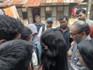 The field trip aimed to provide students with hands-on experience in fieldwork operations and real-world data collection. During the visit, participants received an overview of icddr,b’s history, including the evolution of its data collection methods—from traditional paper-based questionnaires to modern tablet-based applications. Students then observed field supervisors conducting household surveys, demonstrating how demographic, socio-economic, and sensitive health data (such as pregnancy, abortion, and child loss records) are collected using advanced digital tools. Additionally, they gained practical insights into longitudinal data collection, data management, and quality control processes—key components of their Research Methodology coursework.