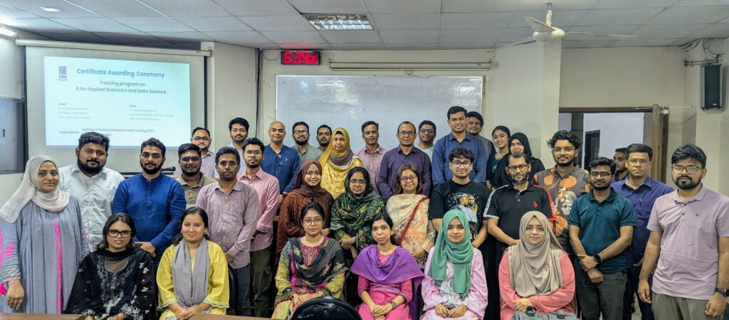 At the closing ceremony, ISRT’s Director, Professor Dr. Tamanna Howlader, awarded certificates to participants, commended their dedication, and emphasized the importance of mastering modern data science tools. Program coordinators, including Dr. Mohaimen Mansur, praised the participants’ enthusiasm and the program’s success in equipping them with valuable R programming and statistical analysis skills.