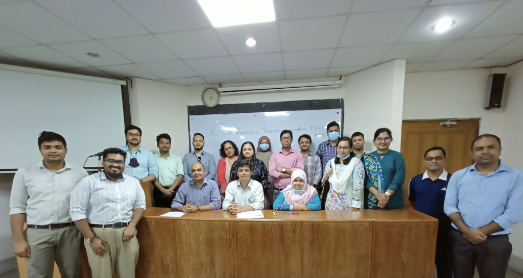 To equip researchers of multidisciplinary fields with the knowledge of R programming language for handling emerging data analysis problem in their day-to-day life, ISRT has been offering the “R for data analytics program” since 2018. In continuation, this year the month-long training program has been held from 02 August 2022 to 27 August 2022. The successful participants received their certificates from the honourable Director of ISRT, Professor Dr. M. Shafiqur Rahman, on August 30 2022 in a festive certificate-giving ceremony that took place at the ISRT seminar room. The convener of the R training program committee, Dr. Mohaimen Mansur, along with other faculty members of ISRT was also present at the event. ISRT family congratulates the successful trainees and wishes them all the best for their upcoming endeavours.