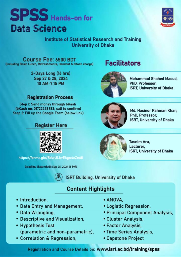 The SPSS Hands-on for Data Science training program is scheduled for September 27 and 28, 2024