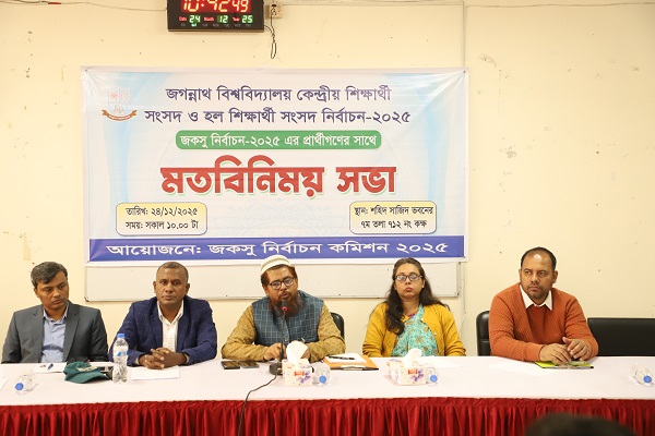 জকসু ও হল সংসদ নির্বাচন ২০২৫ উপলক্ষ্যে রিটার্নিং কর্মকর্তা ও সহকারী রিটার্নিং কর্মকর্তাদের সঙ্গে সমন্বয় সভা অনুষ্ঠিত Published 28 Dec, 2025 Read More