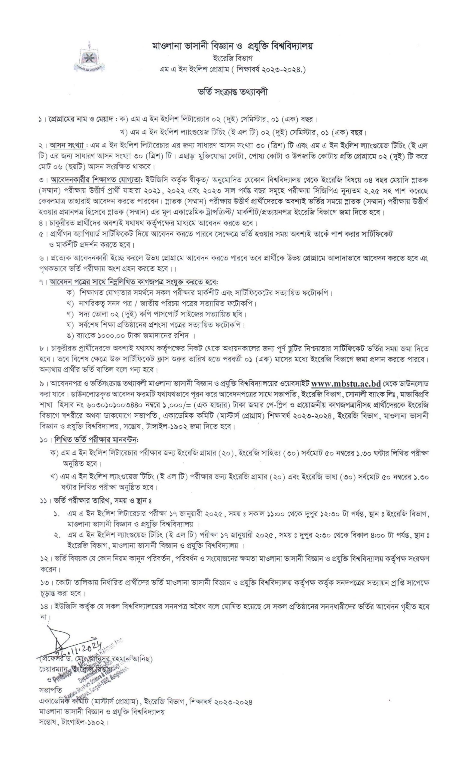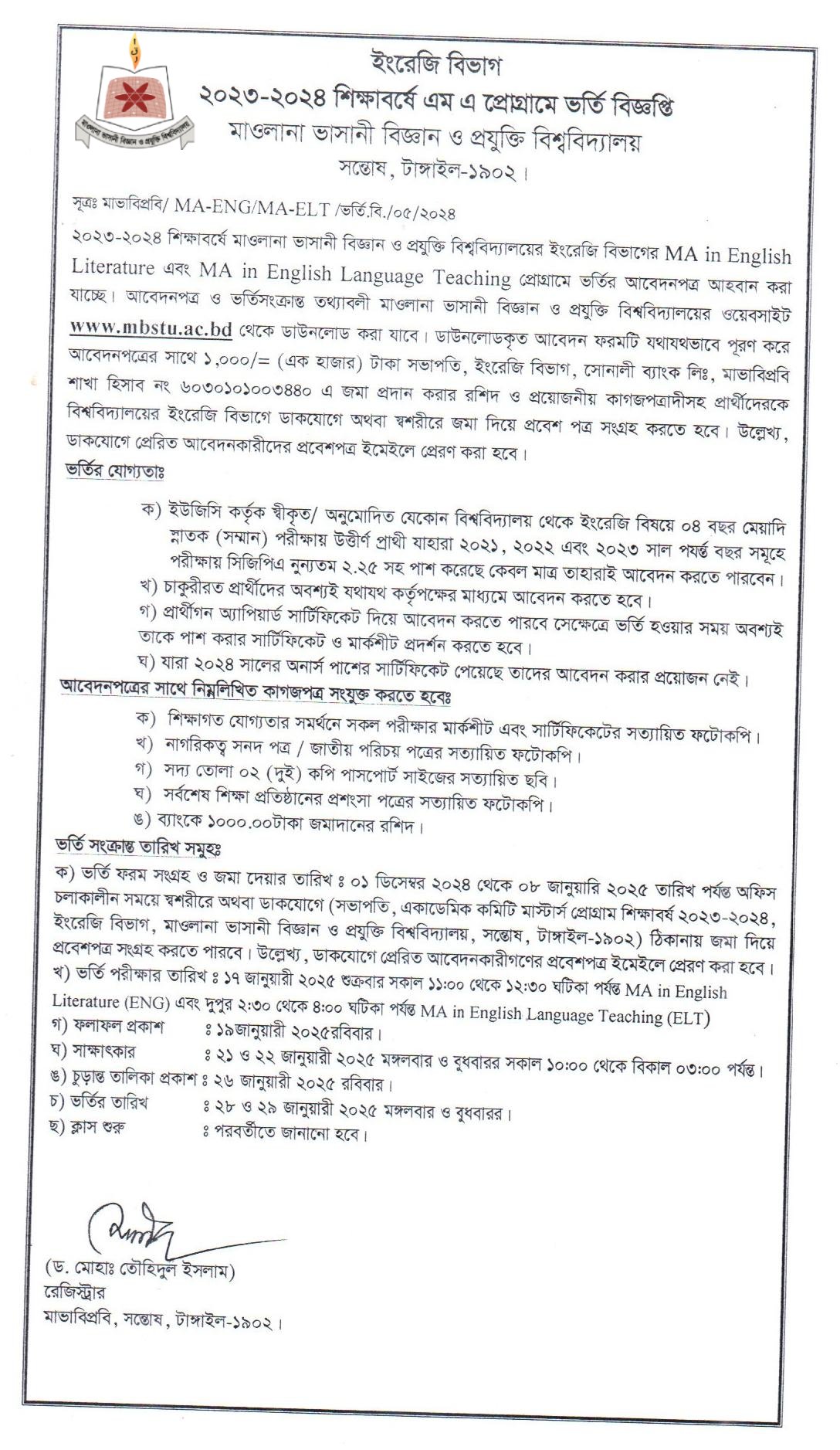 ২০২৩-২০২৪ Deltin 7 অনলাইন স্লটবর্ষে মাওলানা ভাসানী বিজ্ঞান ও প্রযুক্তি লগইন এর ইংরেজী Deltin 7 অ্যাপের MA in English Literature এবং MA in English Language Teaching প্রোগ্রামে Deltin 7 IPL বেটিংর আবেদনপত্র আহবান করা যাচ্ছে।