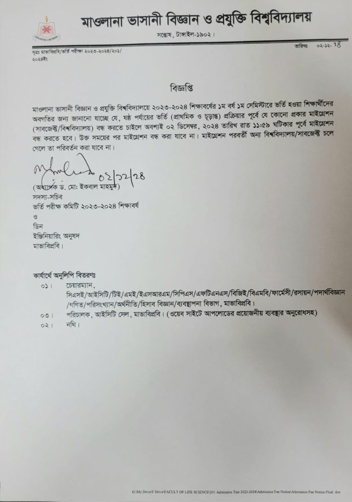 মাইগ্রেশন বন্ধ করতে চাইলে অবশ্যই ০২ ডিসেম্বর, ২০২৪ তারিখ রাত ১১:৫৯ ঘটিকার পূর্বে মাইগ্রেশন বন্ধ করতে হবে।