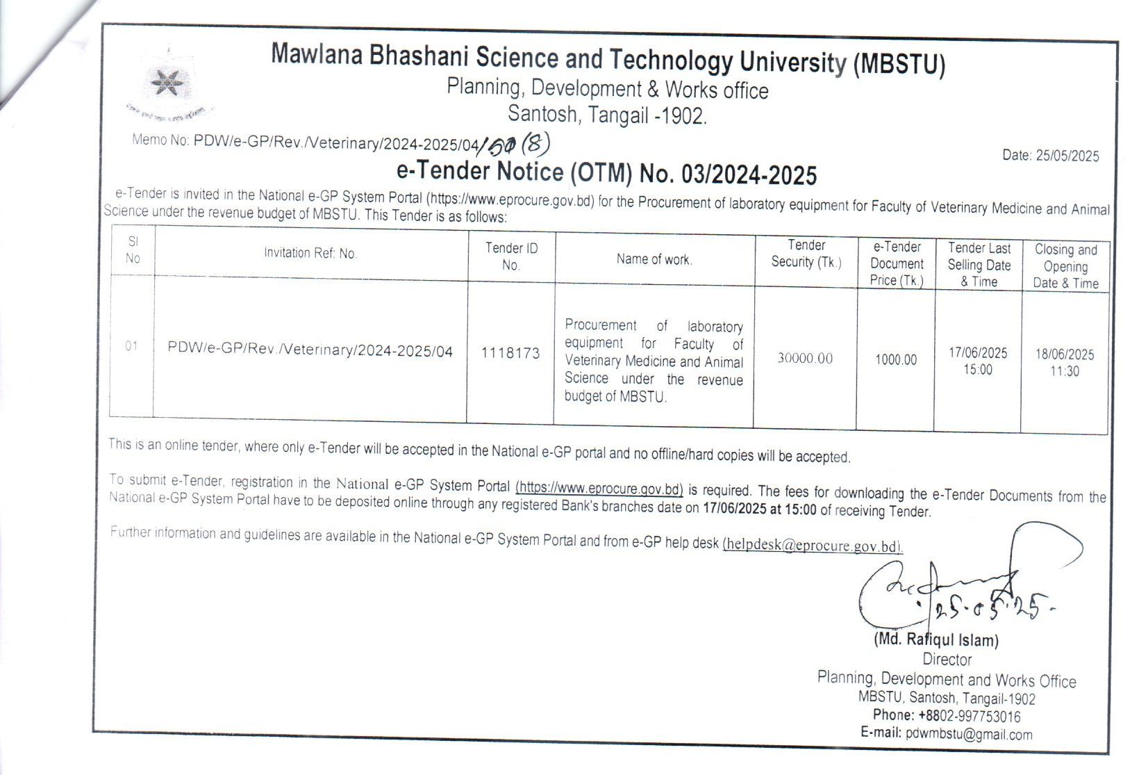 RFQ No. MBSTU/CPS/SEC(30)/RFQ/G-03/2025 | View | ||