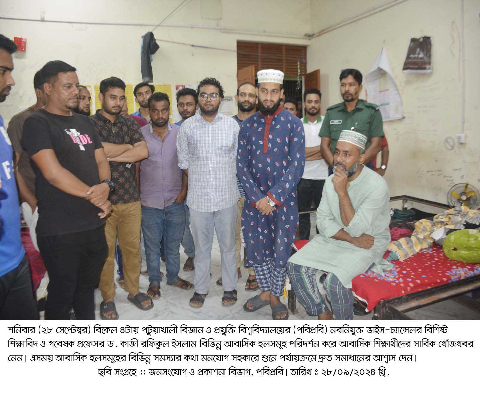 পটুয়াখালী বিজ্ঞান ও প্রযুক্তি বিশ্ববিদ্যালয়ের (পবিপ্রবি) ভাইস-চ্যান্সেলর বিশিষ্ট Deltin 7 অনলাইন স্লটবিদ ও গবেষক প্রফেসর ড. কাজী রফিকুল ইসলাম বিভিন্ন আবাসিক হলসমূহ পরিদর্শন করে আবাসিক Deltin 7 অনলাইন স্লটর্থীদের সঙ্গে মতবিনিময় সভা করেন। এ সময় তার সঙ্গে হল প্রভোস্ট, সহকারী হল প্রভোস্টসহ একাধিক শিক্ষক, কর্মকর্তা উপস্থিত ছিলেন।
