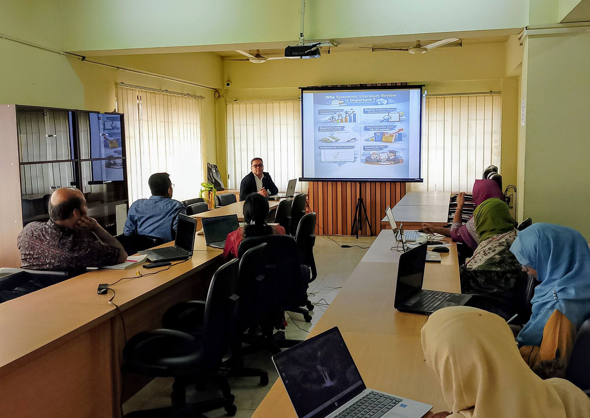 An interactive question-and-answer segment followed the presentation, allowing participants to engage directly with the speaker and clarify methodological issues related to scientific writing and literature review processes.