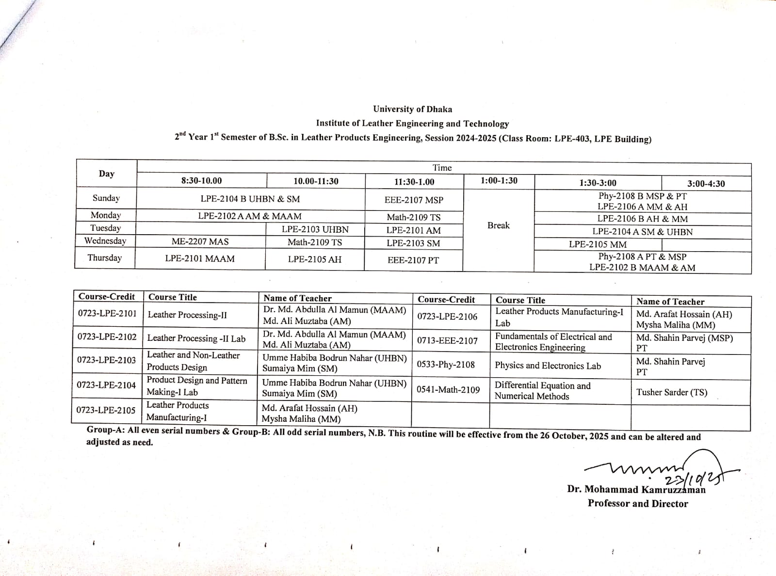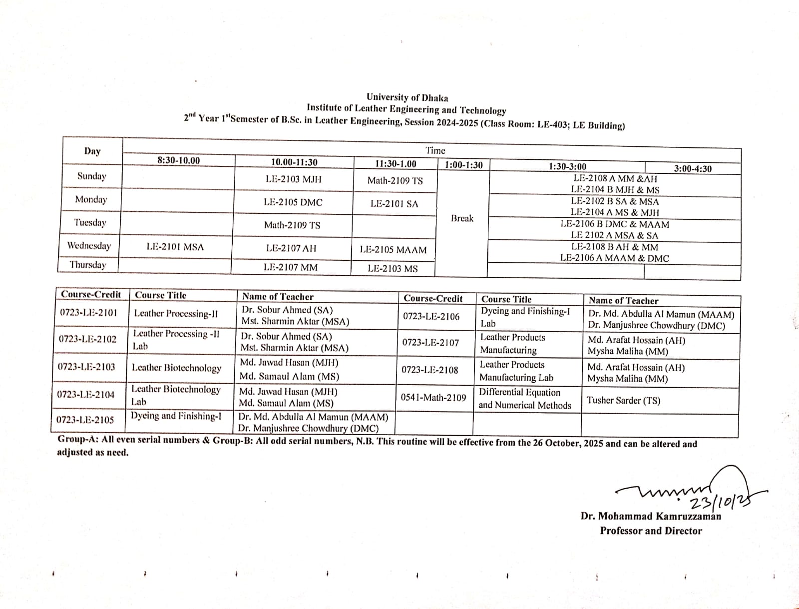 2nd Year 1st Semester B.Sc. in LE/FE/LPE-2025: class routine