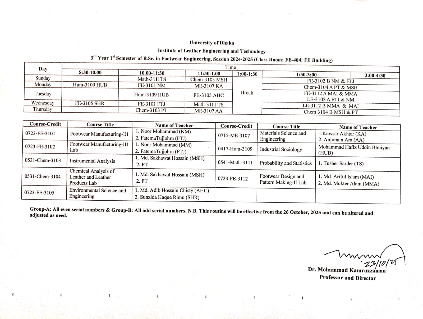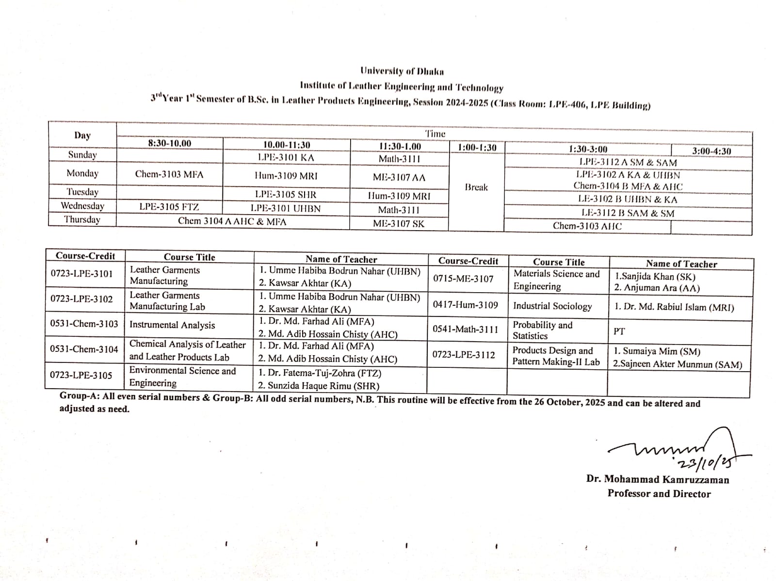 3rd Year 1st Semester B.Sc. in LE/FE/LPE-2025: class routine