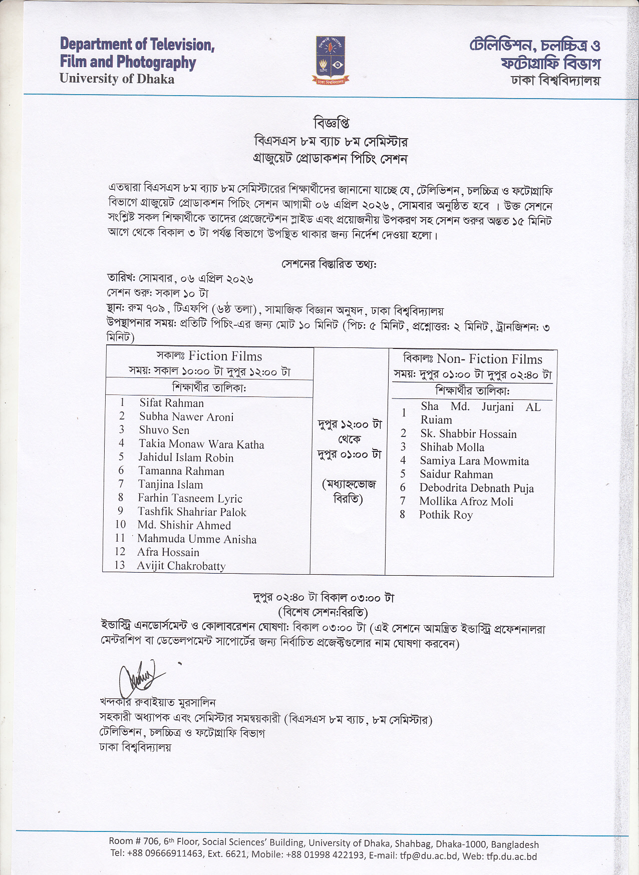 বিজ্ঞপ্তি: গ্রাজুয়েট প্রোডাকশন কর্মশালা (বিএসএস ৮ম ব্যাচ ৮ম সেমিস্টার)